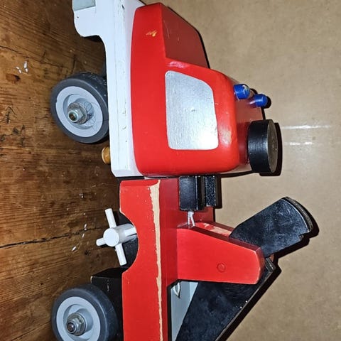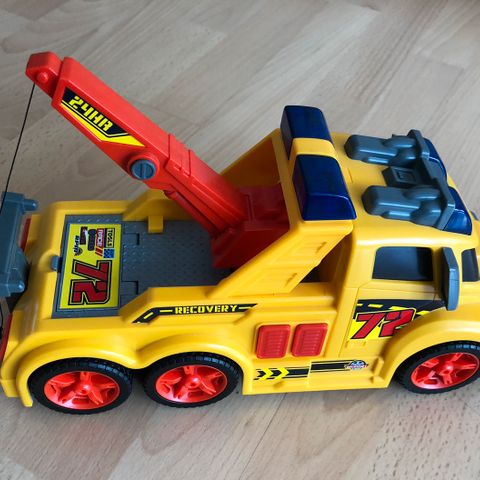Kranbil i træ fra Haba, som kan køre og med en kran, der kan drejes rundt.