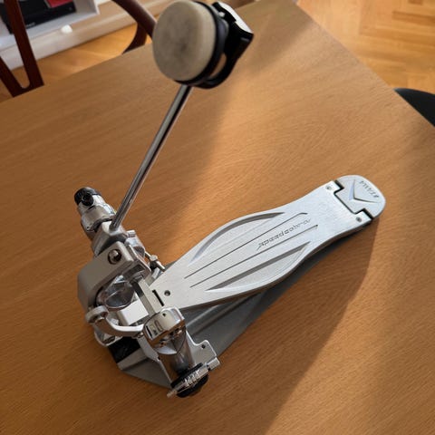 Tama Iron Cobra trommeslager pedal. Pedalen er designet til brug ved trommespil og er lavet af metal med en sort finish.
