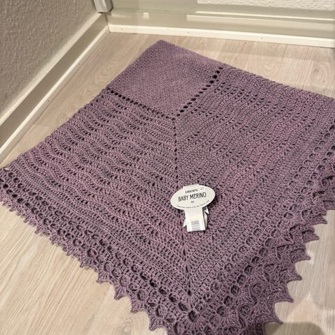Hjemmehæklet tæppe i bomuld.
