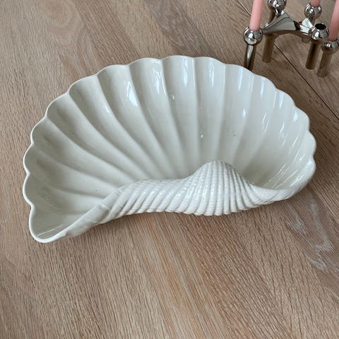 Christina Iversen Musling Underkop i keramik med en form inspireret af muslingeskaller. Underkoppen har en naturlig beige farve med en let struktureret overflade. Velegnet til brug sammen med kopper til kaffe eller te.