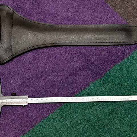 Denne model er den velkendte 2786-01 variant — en robust skabelon som ofte bruges af blikkenslagere, VVS-folk og metalhåndværkere til at aftegne og markere afstande hurtigt og præcist.
