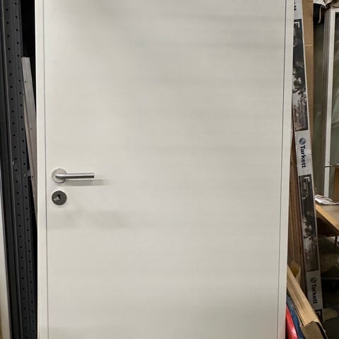 Hvid indvendig dør med en karmmål på 69 x 209,5 cm