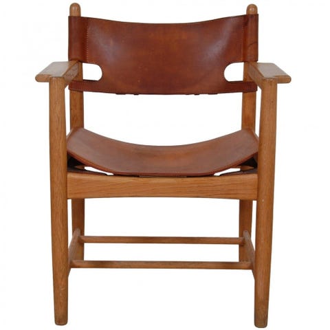 Børge Mogensens 3237 spanske spisebordsstol / kontorstol med så fin patina på læderet og egetræsstellet.