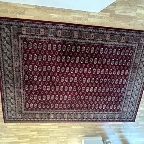 Flot uldtæppe i klassisk orientalsk inspireret mønster.