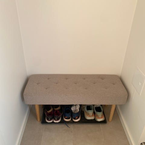 Stof og bambus. B90 x H45 x D34 cm