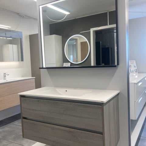 Badeværelsesmøblement købt hos Kolding Køkken og Bad Center. Fejlkøb - aldrig brugt. Passer godt til det mindre badeværelse.
