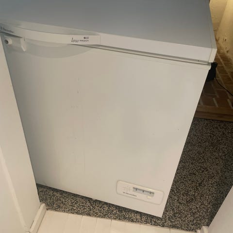 Fin kummefryser kan afhentes gratis. Den har lidt skrammer på lågen. Mål: 84 cm høj, 65 cm dyb (inkl. hængsler fra lågen) og 113 cm bred. Den står i et depotrum i en lade. Der er ingen trapper, så den kan relativt nemt afhentes.