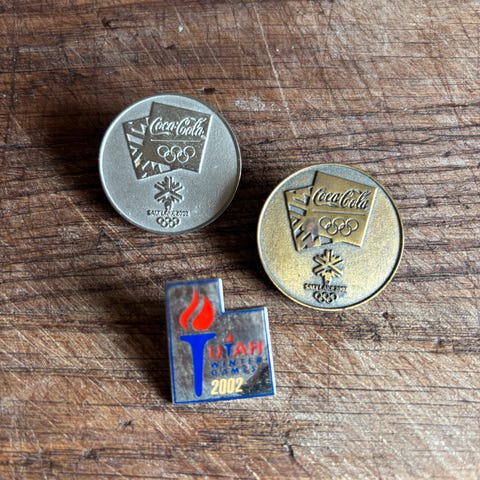 Olympic Games Atlanta 1996 pins, 2 stk. i originale æsker fra hovedsponsor UPS.