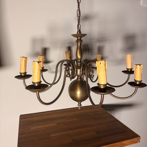 Pendel, Lysekrone, loftslampe udført stilrent i messing med fog & Mørup tulipan glas. Fremstår i intakt stand og er lige til at hænge op.