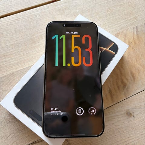 Apple iPhone 16 Pro Max smartphone med 256 GB lagerplads. Farve er gold, medfølger kasse samt tilbehør som et MagSafe cover, oplader ledning. Batterikapacitet er på 96%. Kvittering haves, er købt i dec. 2024