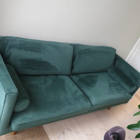 Sofacompany sofa i blå velour. Sofaen har et enkelt og moderne design med blødt materiale. Sofaen er naturligvis brugt men stadig i god stand og vi laver naturligvis også en god renser så den føles lækker!