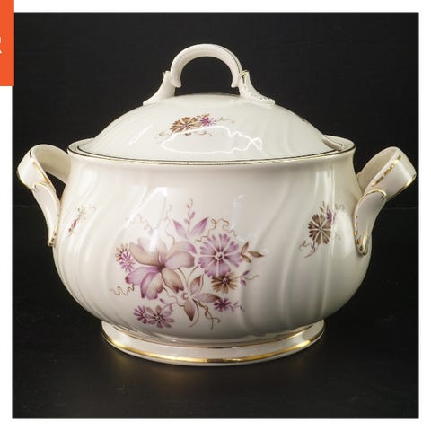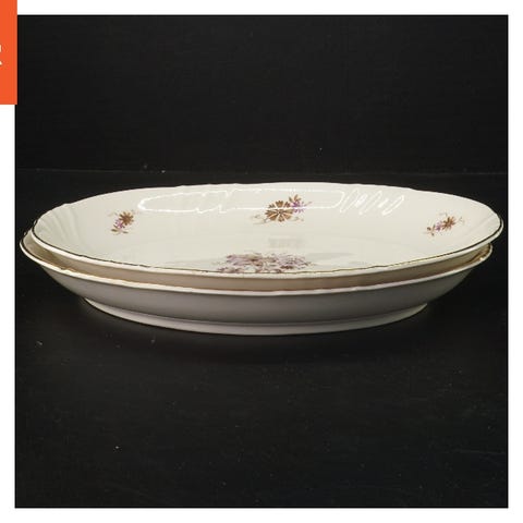 Elegant serveeingsskål fra det ikoniske Raili-stel af Arabia, designet af Svea Granlund i 1950’erne. Denne skål har en diameter på 21 cm og fremstår i god stand uden skår eller revner. Det fine blomster- og guldkantede mønster giver et tidløst og stilfuldt udtryk – perfekt til både hverdag og fest.