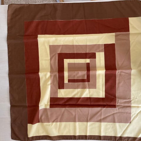 Nyt og ubrugt Tørklæde med et sort, hvidt og beige ternet mønster. Tørklædet har en sort kant med beige striber. Mønsteret er moderne og kan bruges som både accessorie til hverdags- og formelt tøj. Materialet er let og giver et stilfuldt præg til ethvert outfit.