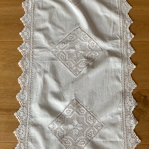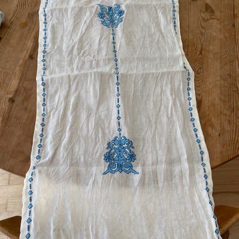 Mini vintage broderet dug/bordløber (str. 48x35 cm)