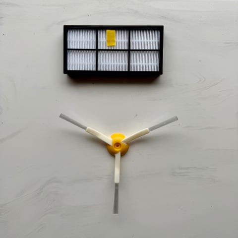 De viste genstande er fire udskiftningsbørster designet til brug i robotstøvsugeren iRobot. Børsterne er fremstillet i en kombination af blødt og fleksibelt plastikmateriale og er skabt til effektiv rengøring af gulve. De er designet til nem installation og fjernelse fra støvsugeren og passer ind i standard robotstøvsugerophæng. Farvet i forskellige nuancer af grøn, er børsterne 18,5 cm lange og præsenterer en spiralform, som giver optimal rengøringskraft.