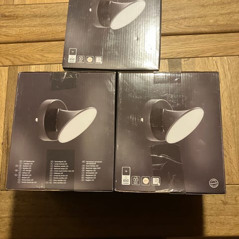 Har 4 stk væg lamper som gir virkeligt dejligt lys som kan justeres spredningen af lys i inderskærmen.