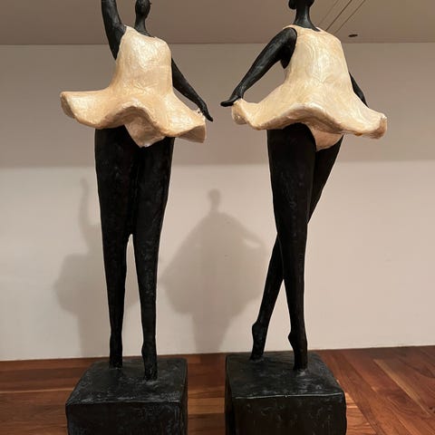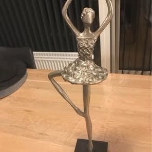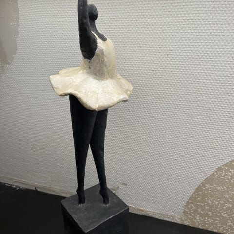 Figur af ballerina i hvidt porcelæn. Figuren viser en siddende ballerina med detaljeret kjole og opsat hår. Velegnet som dekorativ genstand til hjemmet. Figuren måler 13 cm.