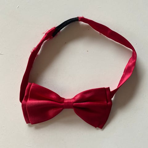 En butterfly i rødt og sort ternet mønster. Den har en Ø størrelse på 12 cm og er justerbar med en spænde, hvilket gør den nem at tilpasse forskellige halsstørrelser. Materialet ser ud til at være et kraftigt stof, ideelt til formelle arrangementer. Butterflyen har et klassisk design med en knude i midten.