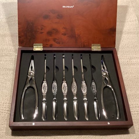 Sættet indeholder bestik designet specielt til servering af fisk. Det består af seks gafler og seks knive, samt en serveringsspatel og en serveringsgaffel. Bestikket er fremstillet af rustfrit stål og måler hver 21x2,5 cm. Det unikke design inkluderer et motiv af en fisk præget på håndtagene, hvilket giver et maritimt tema.