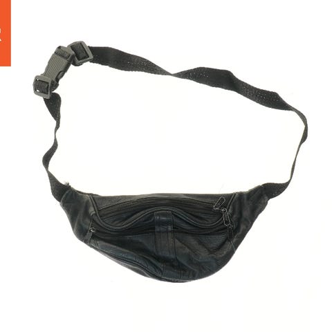 Denne bæltetaske er lavet af beige læder og har en simpel design med en rund klap med en enkelt sølvfarvet knaplukning. Taskens rem er justerbar, så den kan bæres komfortabelt omkring taljen. Taskens størrelse er 17,5 x 14 cm, hvilket gør den ideel til at opbevare småting som nøgler, penge og kort.