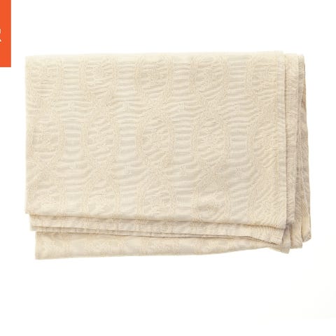 Dette er en grå dug med en størrelse på 145x200 cm.