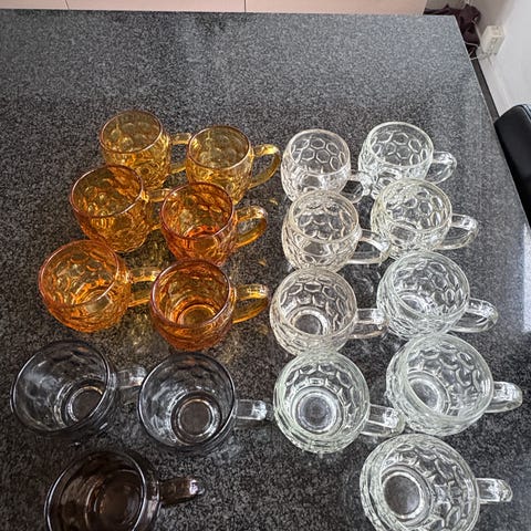 Retro ølkrus i gult glas (str. 2 stk Ø 8,5 cm højde 9 cm)