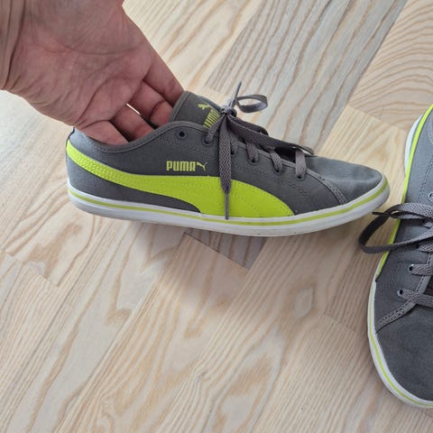 skoene er brugt med let slitage, men uden skader. er primært brugt indendørs.