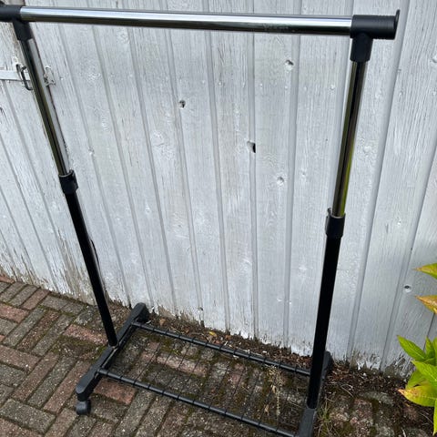 Tøjstativ med hjul og 4 skuffer der er en bule i toppladen over skufferne som også ses på billedet