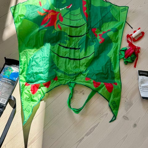 Roomate interiør drage med hale til børneværelset. Den har hængt på en væg i et børneværelse i et ikke ryger hjem som interiør/pynt, men kan sikkert også bruges i en god leg, dog kan den ikke bruges som en rigtig udendørs drage :)