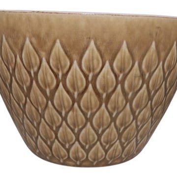 Sættet består af 4 dele i matchende serie med varme jordfarver og smukke reliefdekorationer med blade/frugter.