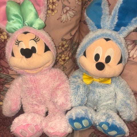 Dette er et tøjdyr, der forestiller Minnie Mouse. Det er fremstillet i blødt materiale og har en størrelse på 68x30 cm. Minnie Mouse bærer en lyserød kjole med hvide prikker og en matchende lyserød sløjfe på hovedet. Dens hænder er hvide, og dens fødder er også lyserøde med lille sløjfer. Legetøjet ser ud til at være velholdt og egnet for børn eller som en samlerobjekt.