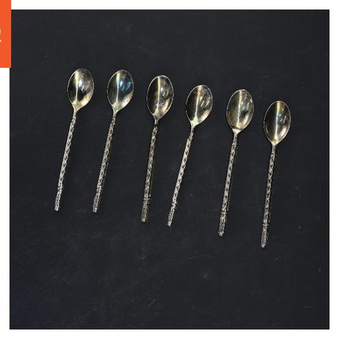 Dette er et sæt bestik, der inkluderer store skeer, små skeer, og gafler, alle lavet af stål med en længde på cirka 20 cm. Der ser ud til at være et ensartet design henover alle dele i sættet. Bestikket er velegnet til forskellige typer måltider og indeholder nok stykker til en lille middagssammenkomst.