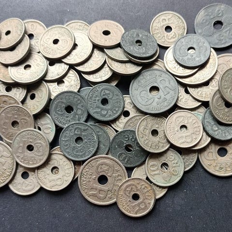 Danmark 28 stk forskellige 10 + 25 øre 1920 til 1946