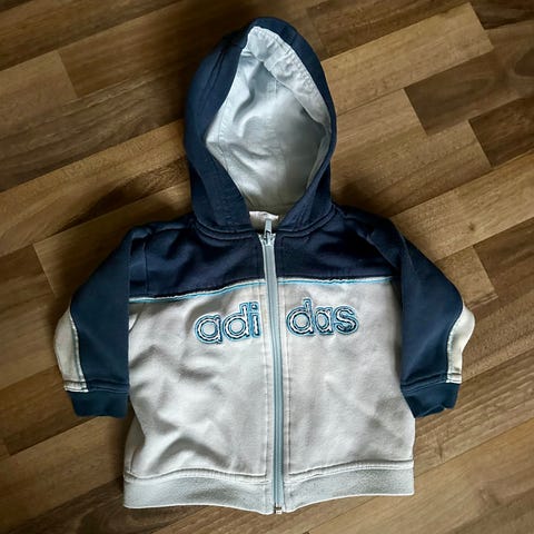 Dette er en hættetrøje med camouflage mønster. Den har et stort 'Adidas' logo på forsiden. Trøjen kommer med en hætte, og har en frontlomme i kængurustil.