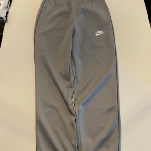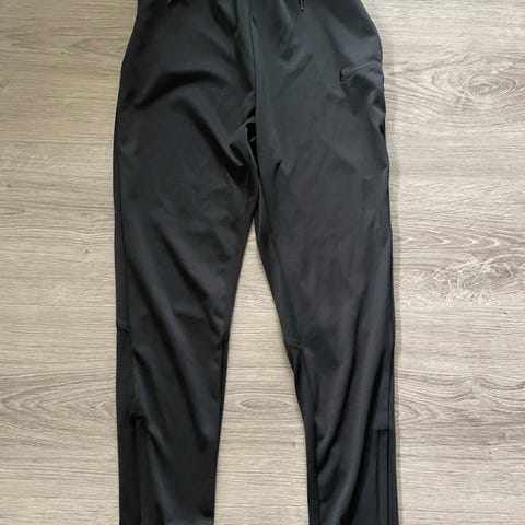 Bukserne er fra Nike og har et kamuflage mønster i grønne og sorte toner. De har elastisk talje med snøre og elastiske manchetter ved benene. Et ikonisk hvidt Nike-logo er placeret på højre ben.