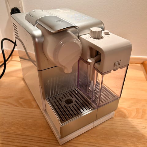 A Nespresso DeLonghi Coffee Machine, Lattissima+ make. Used but clean and in good condition. It has been descaled.