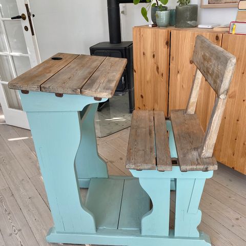 Sød gammel skolepult til børneværelset eller sommerhuset. God til at lave et krea- eller hyggehjørne til børnene.