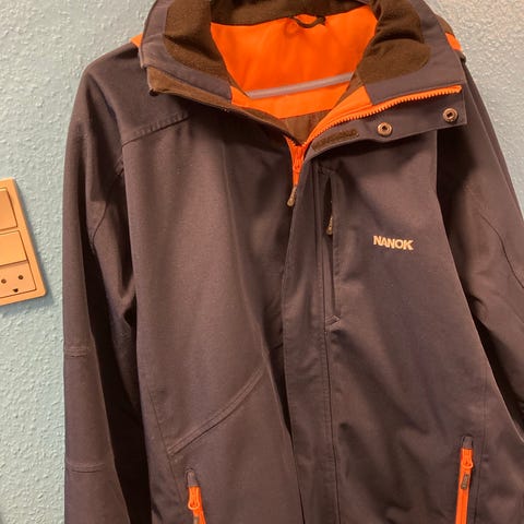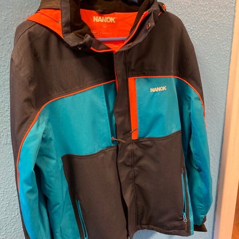 Nanok Extreme Level 5000 skijakke i størrelse M, blå farve. Jakken er designet med funktioner som vindtæt, vandtæt og åndbar, hvilket gør den egnet til forskellige vejrforhold og aktiviteter.