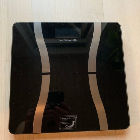Smart badevægt som kan klare op til 180 kg og som kan analysere fedtprocent, BMI, muskelmasse og væske.
