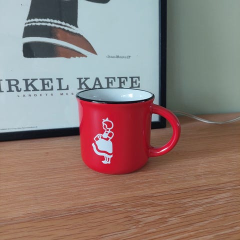 Samlermøntkrus med Irmapige motiv fra Irma (str. Ø. 4 cm. længde. 4 cm)
