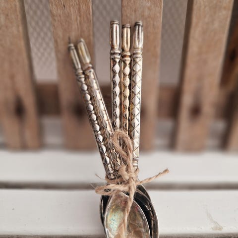 Vintage sølvskeer med emblemer - sæt af 8 (str. 12 cm)