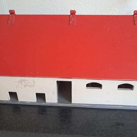 Træ legetøjsbondegård med røde tage