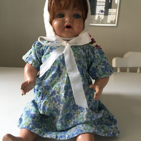 Porcelænsdukke, Antik dukke Med. Tøj 53 cm lang