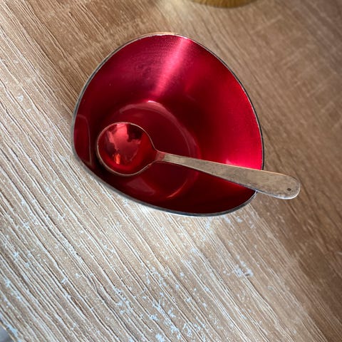 Fine saltkar i blå og sølvfarvet ( jeg ved ikke hvad materiale det er )