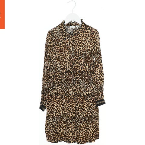 Et børnesæt bestående af en langærmet bluse og leggings med leopardmønster. Blusen og leggingsene har begge et ensartet leopardprint i beige og brune nuancer. Stoffet ser ud til at være blødt og komfortabelt til daglig brug.