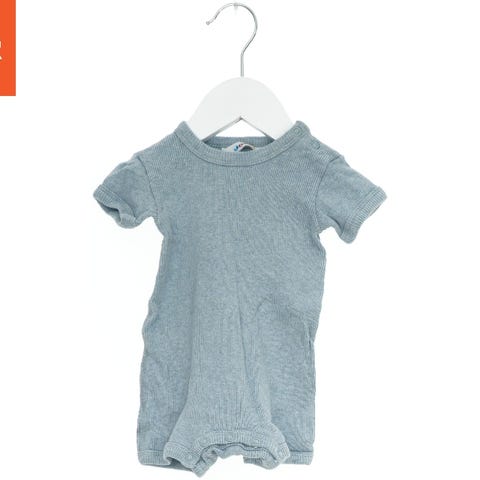 Grå bodystocking med lange ærmer og et stjernemønster. Den er lavet af blødt materiale og har trykknapper ved bunden for nem påklædning og afklædning. Egnet til børn som undertøj eller som en del af hverdagens tøj.