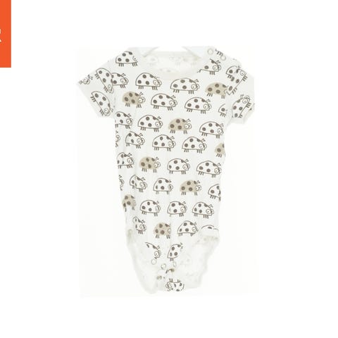 Langærmet bodystocking til babyer med et Hello Kitty motiv foran. Farven er hovedsageligt hvid med en rød sløjfe på printet. Der er knapper mellem benene for nem adgang og montering.