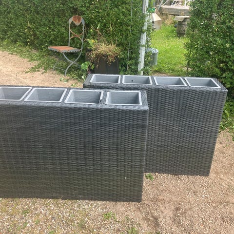 Denne plantekasse i polyrattan med tre udtagelige krukker har et indbygget espalier, og den vil føje et strejf af charme til ethvert udendørsområde.
