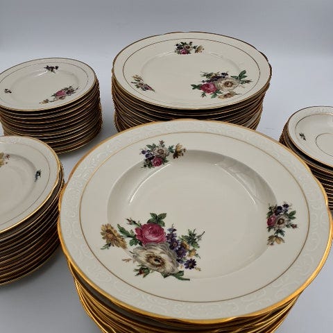 Porcelæn, Spisestel og kaffestel, Københavns Porcelænsmaleri, af mærket Rosenborg fra Københavns porcelænsmaleri.