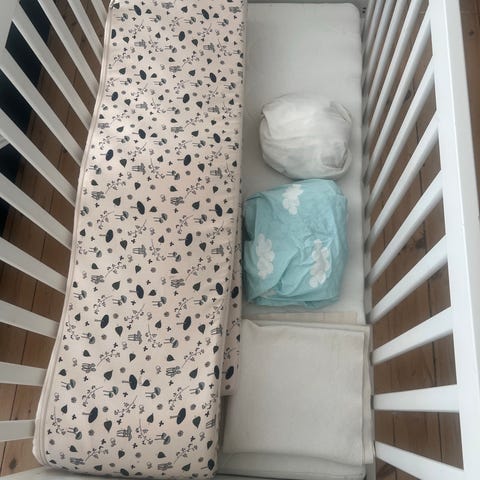 Madrassen fra Jysk. Den er forsøgt brugt en gang til middagslur (barnebarn), men han ville ikke sove i den